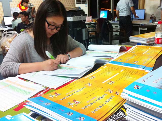 另外,根據(jù)組委會(huì)的要求,在前期的票證準(zhǔn)備階段,行政中心團(tuán)隊(duì)投入了大量的精力,所有參加閉幕式的觀眾、運(yùn)動(dòng)員、演職人員、各保障部門人員等均要求實(shí)名信息采集,制作含有可讀取個(gè)人信息的芯片證卡。技術(shù)部迅速攻克難關(guān),從常州租借專業(yè)設(shè)備不分晝夜加班加點(diǎn),確保閉幕式近5000張門票和逾8000張各類證件及時(shí)準(zhǔn)確無誤的送交組委會(huì)。許多參加票證制作的同志經(jīng)常加班到凌晨三、四點(diǎn),第二天早早就又到崗位上接著干。他們只為一個(gè)共同的夢(mèng)想而努力。