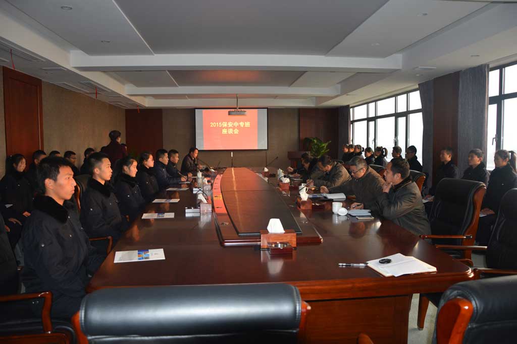 近日,保安班全體成員在公司開展座談活動。公司總經(jīng)理婁伯翱、行政中心陳總監(jiān)、黃主任以及各部門領(lǐng)導(dǎo)出席會議。