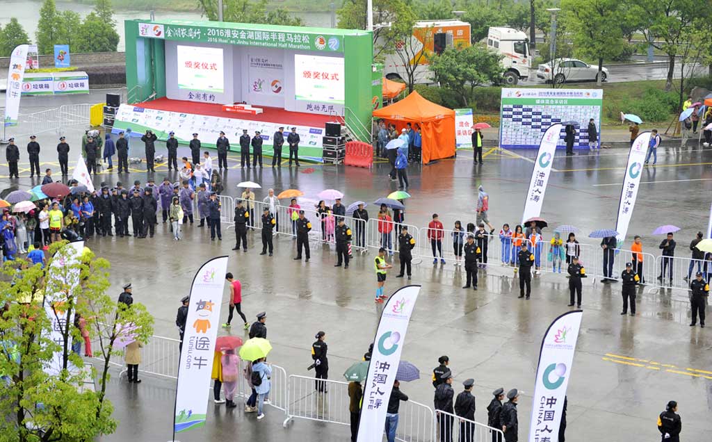 由中國田徑協(xié)會、江蘇省體育局、淮安市人民政府聯(lián)合主辦,金湖縣人民政府、淮安市體育局、江蘇省體育產(chǎn)業(yè)集團承辦的“2016淮安金湖國際半程馬拉松”比賽,于2016年5月15日上午8:30分在金湖縣荷花廣場鳴槍開賽,來自世界各地及我國長跑愛好者10000余名運動員參加了比賽?;窗彩斜0卜?wù)總公司派出700余名安保人員冒雨執(zhí)勤,提升了保安隊伍在復雜天氣條件下的快速反應(yīng)和安保執(zhí)勤的能力。