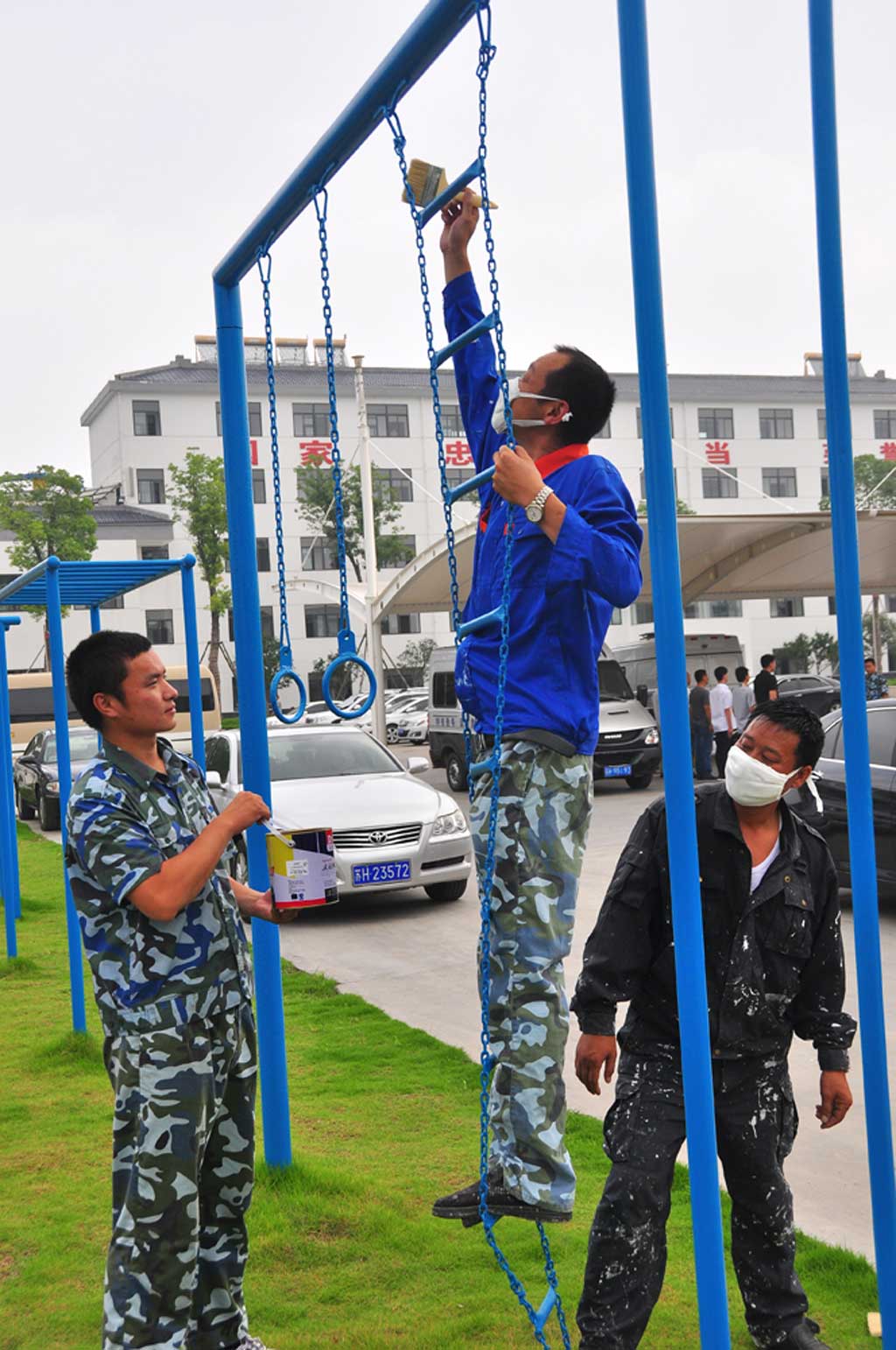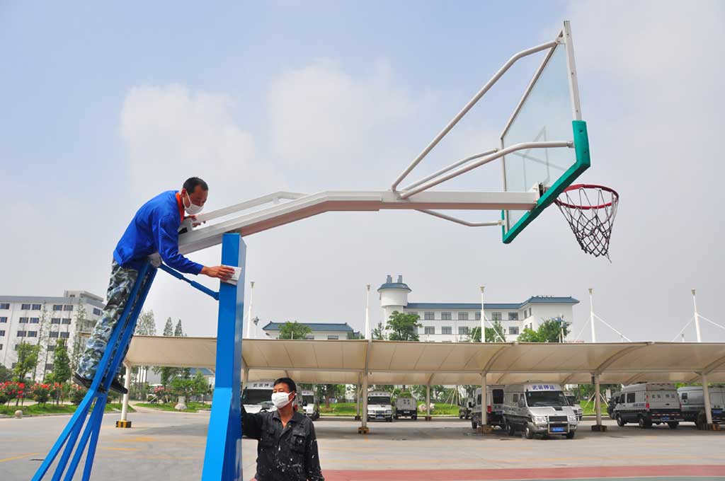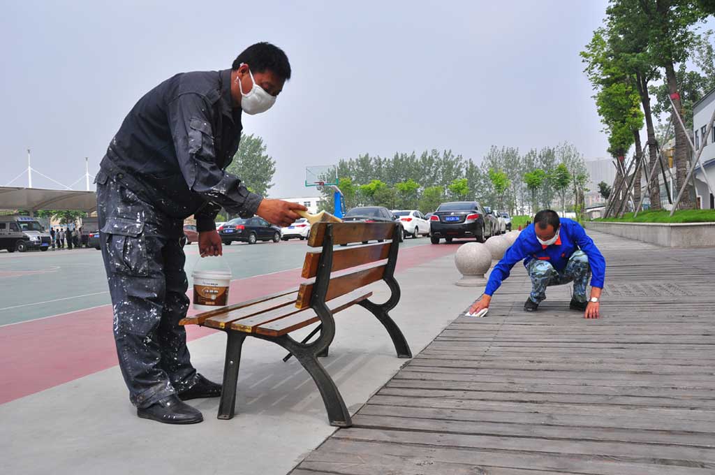 接到任務(wù)后,趙炳華、丁云清2名同志首先對所有施工現(xiàn)場進行了察看和預(yù)算,并制定了施工方案。基于押運樓是在老平房的基礎(chǔ)上翻新加層建筑,使得部分房間墻面脫落并出現(xiàn)裂縫,樓體墻面防水層破損,每逢下雨天便有雨水不同程度的滲漏,影響了辦公和生活秩序,加上公司院內(nèi)籃球架、單雙杠器材、木椅、木橋、樓前防護木等褪色和部分損壞的情況,以及剛建好的綜合活動中心二樓1100多平方米木質(zhì)地板需要進行漆化處理。面對如此工程,趙炳華、丁云清2名同志迅速作出合理安排和應(yīng)對措施,開始著手對樓體做好防水處理,同時將1至5層樓的隊員宿舍、辦公室、更衣室等所有房間1000多平方米的墻面進行打磨粉刷,并對公司剛建好的活動中心二樓1100多平方地面進行多次漆化處理,以及房屋里外設(shè)施進行了修繕。