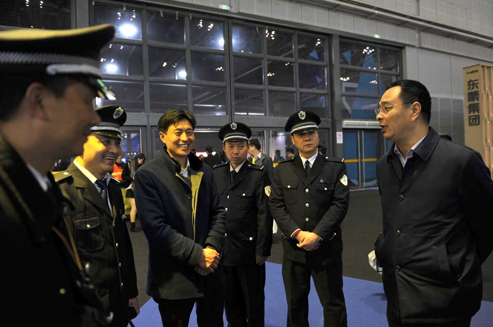 在上海國(guó)家會(huì)展中心,婁伯翱總經(jīng)理實(shí)地查看了隊(duì)伍執(zhí)勤情況,詳細(xì)了解了隊(duì)員工作職責(zé)和工作時(shí)間,聽(tīng)取了近期工作匯報(bào)。并針對(duì)駐滬隊(duì)伍伙食、班次、休假、交通以及業(yè)務(wù)發(fā)展等工作與客戶單位負(fù)責(zé)人進(jìn)行了深入溝通交流。