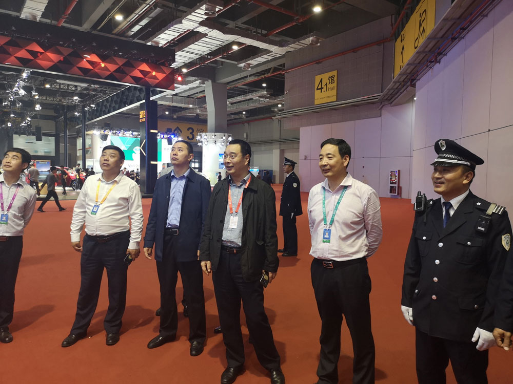 隨后,總公司領導一行又來到了上海國家會展中心執(zhí)勤現(xiàn)場,逐一看望執(zhí)勤的帶隊領導及隊員,當婁董事長、趙總經(jīng)理看到執(zhí)勤隊員規(guī)范的執(zhí)勤動作、標準的執(zhí)勤規(guī)程表示十分滿意,要求全體參加此次上海國際汽車工業(yè)展覽會的同志們,繼續(xù)發(fā)揚不怕苦、不怕累的優(yōu)良傳統(tǒng),圓滿完成總公司交給的神圣使命。全體隊員表示,一定牢記總公司領導囑托,堅決圓滿完成此次會展執(zhí)勤任務。