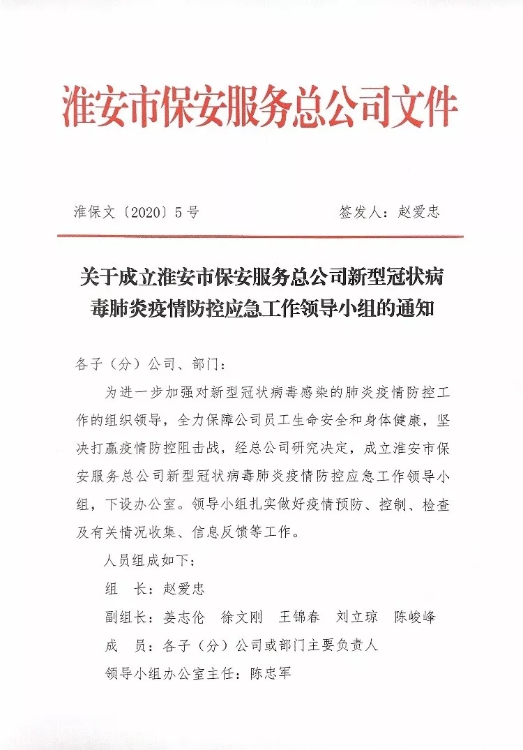 截止目前,淮安保安沒(méi)有發(fā)現(xiàn)一名員工感染新型冠狀病毒,疫情得到了有效防控。
