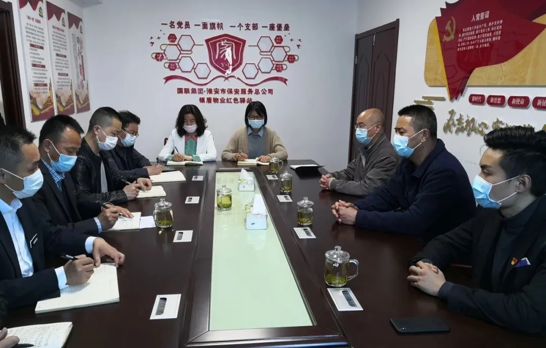 為進(jìn)一步深化國聯(lián)集團(tuán)“紅色驛站”特色黨建品牌建設(shè),發(fā)揮黨建引領(lǐng)作用, 4月28日上午,總公司下屬淮安市銀盾物業(yè)服務(wù)有限公司“紅色驛站”舉行揭牌儀式??偣军h總支書記、總經(jīng)理趙愛忠,副總經(jīng)理黃欣晨,總經(jīng)理助理陳峻峰,物業(yè)公司經(jīng)理王樹先共同為“紅色驛站”揭牌。