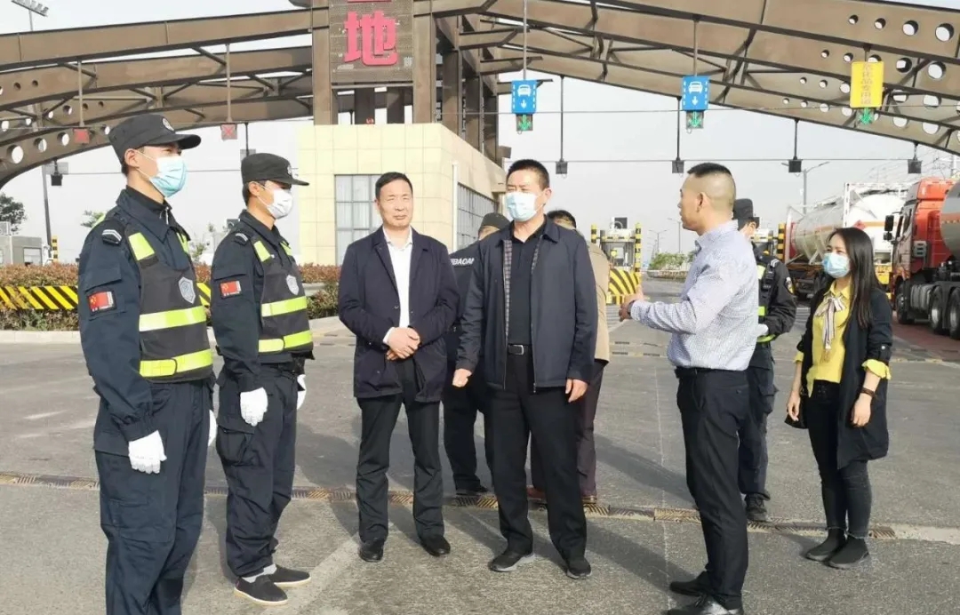 下午五點,在連云港石化基地封閉管理現(xiàn)場,趙總一行逐一走訪了各個卡口及辦證中心等服務(wù)崗位,詳細(xì)查看了安全生產(chǎn)制度臺賬、工作流程規(guī)范落實情況,對全體隊員在疫情期間克服重重困難,高質(zhì)量完成園區(qū)封閉管理任務(wù)表示充分肯定,對領(lǐng)導(dǎo)班子良好的團(tuán)隊協(xié)助精神給予高度認(rèn)可。