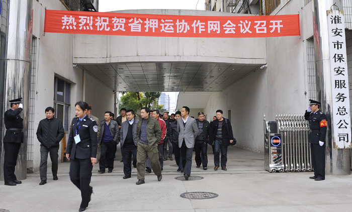 2011年11月30日至12月1日,江蘇省押運(yùn)協(xié)作網(wǎng)第五次會(huì)議在淮安召開(kāi),淮安市公安局初曉副局長(zhǎng)致歡迎詞,來(lái)自南京、無(wú)錫、蘇州、鎮(zhèn)江、常州、南通、泰州、揚(yáng)州、徐州、連云港、鹽城、宿遷、淮安等全省十三個(gè)市的保安(押運(yùn))公司總經(jīng)理和分管領(lǐng)導(dǎo)40余人參加了會(huì)議。省公安廳治安局賁志平副局長(zhǎng)、省公安廳保安監(jiān)管科錢(qián)幼菁科長(zhǎng)、淮安市公安局治安支隊(duì)劉硯明政委以及保安監(jiān)管科領(lǐng)導(dǎo)應(yīng)邀出席會(huì)議。