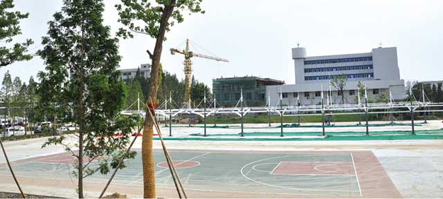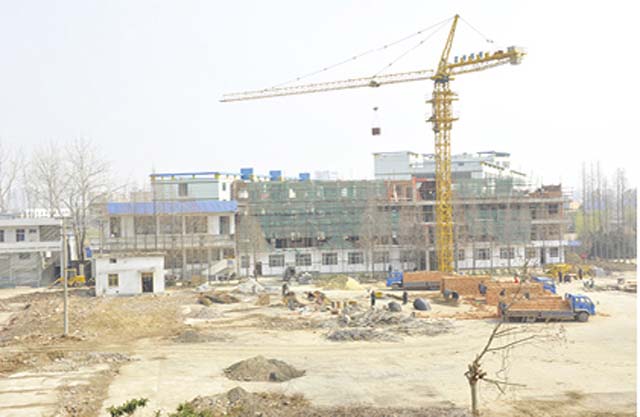 建設(shè)中的辦公樓和停車(chē)場(chǎng)一角