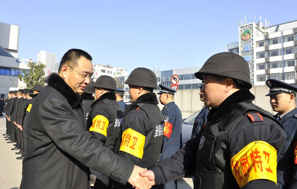 每到一處,公司領(lǐng)導都與堅守崗位的保安員親切握手,詳細詢問隊員的工作和生活情況,并向堅守崗位的員工致以新春的問候,祝福大家新春快樂、全家幸福!并勉勵大家在新的一年里勤奮工作,敬業(yè)奉獻,為淮安保安工作再上新臺階作出更大的努力和貢獻!