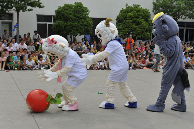 下午兩點(diǎn)多,天空格外的湛藍(lán),孩子們陸陸續(xù)續(xù)走進(jìn)公司院內(nèi),到處充滿了節(jié)日的氣息,樹(shù)上、墻上都掛滿了氣球和彩帶,一副熱鬧的景象。還有可愛(ài)的卡通人物喜羊羊與美羊羊、灰太狼和米妮在院子里給孩子們派發(fā)甜蜜的糖果,讓孩子們洋溢在快樂(lè)中。