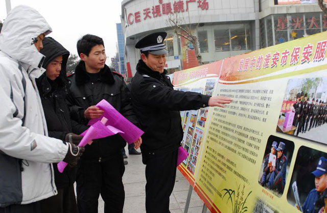 元月10日,是公安機關(guān)110宣傳日。當(dāng)日,總公司辦公室組織保安管理部、駐外保安部、押運中心、培訓(xùn)部、技術(shù)防范部等部門,與公安機關(guān)一起在古順河體育館門前開展《保安服務(wù)管理條例》宣傳活動,通過拉橫幅、放展板、散資料等方式,廣泛宣傳保安條例,接受市民咨詢,深層次了解群眾對保安工作的需求和意見。