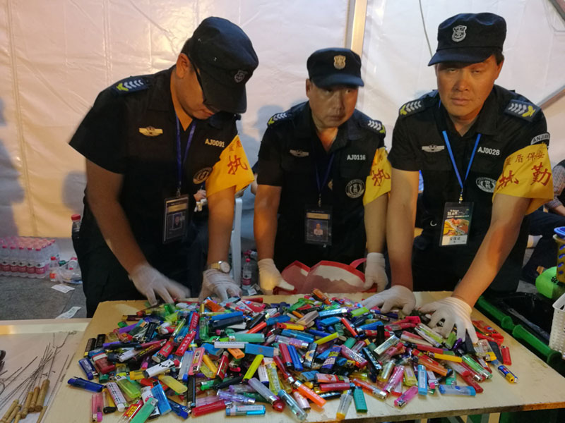 在此次是兩天的晚會安保工作中,保安員共查獲各類假證50余張,違禁品15000余件,其中包括打火機5000余只,各類液體、飲料、化妝品等9000余瓶,管制刀具、剪刀等18把。確保了音樂節(jié)活動順利、有序、安全。