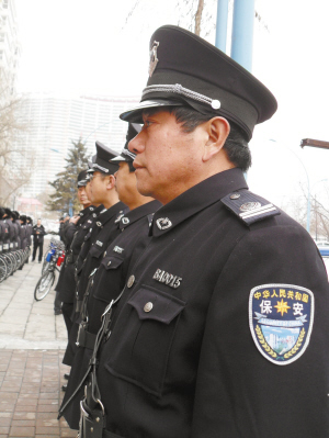 昨日下午2時(shí),在長(zhǎng)春市公安局朝陽(yáng)分局門前,剛剛換上2007式新款制服的社區(qū)保安員整裝待發(fā)。一位保安員表示,之前那套衣服已經(jīng)破舊不堪,補(bǔ)了好幾次。“說(shuō)實(shí)話,那身黃色的衣服真不是很氣派,協(xié)助民警辦案時(shí),根本沒(méi)人搭理我們。新款藏藍(lán)色制服穿上后覺(jué)得氣派很多?!背?yáng)分局的社區(qū)保安員李勇說(shuō)。