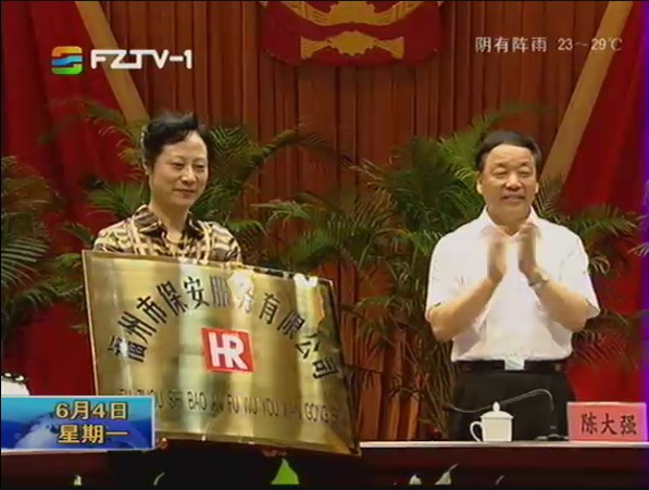 福州市公安局消息 6月4日上午,福州市保安服務(wù)公司交接儀式在市委禮堂舉行。福州市盈瑞投資有限公司正式承接由公安系統(tǒng)剝離出來的福州市保安服務(wù)公司。市委常委、常務(wù)副市長陳大強,市委常委、政法委書記陳為民,省公安廳副廳長、市政府副市長、市公安局局長徐凡新,省公安廳治安管理總隊政委、省保安協(xié)會副會長張德雨,市局黨委委員、副局長鄭雷聲以及市政府相關(guān)部門領(lǐng)導(dǎo)出席現(xiàn)場移交儀式。
