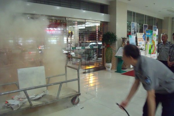(上圖)為了組織好此次專項(xiàng)銀行突發(fā)事件應(yīng)急演練的消防安全演練,黃瑞明科長(zhǎng)和林銘春中隊(duì)長(zhǎng)以實(shí)例向保安員講解應(yīng)對(duì)犯罪嫌疑犯人在營(yíng)業(yè)廳實(shí)施搶劫暴力侵害時(shí),要以“平息事態(tài)、控制局面、防止擴(kuò)大散、減少損失”為主要原則,針對(duì)不同情況采取制止、保護(hù)、求援、疏散等方法,確保銀行營(yíng)業(yè)場(chǎng)所的安全,并對(duì)消防安全“四個(gè)能力”建設(shè)、火災(zāi)基礎(chǔ)知識(shí)、高層建筑逃生自救、辦公樓常用消防設(shè)施的檢查、使用等多個(gè)方面進(jìn)行對(duì)保安員詳細(xì)講解培訓(xùn)。