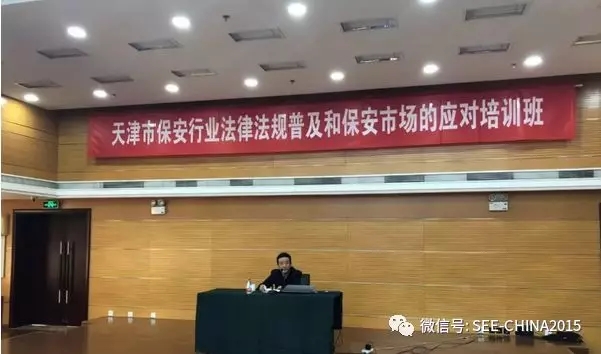 隨后,天津市公安局保安業(yè)監(jiān)管處法制辦周俐攻主任從四個方面講解了《保安從業(yè)企業(yè)法律法規(guī)普及》的相關(guān)知識。解析了保安服務(wù)的概論,說明了《保安服務(wù)管理條例》的指導(dǎo)思想和特點、給保安服務(wù)企業(yè)帶來了啟示和機遇。希望保安企業(yè)和保安員們認真學(xué)***家的法律法規(guī),以提高自身知法守法的自覺性,提升自己的法律水平,充分運用法律武器保護自己的合法權(quán)益,同時善于使用法律武器維護社會治安秩序,保護客戶的人身和財產(chǎn)不受非法侵害,真正成為知法懂法,遵紀守法,勇于護法的專業(yè)化、職業(yè)化的保安隊伍。