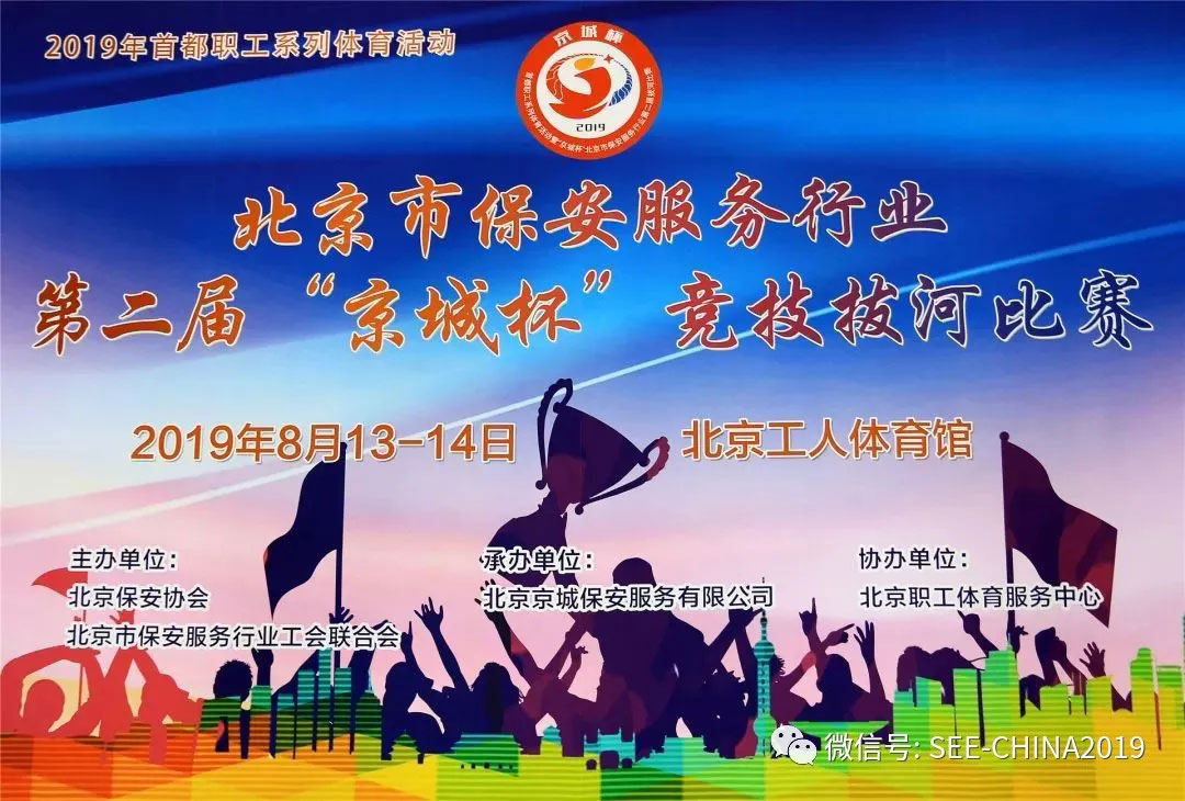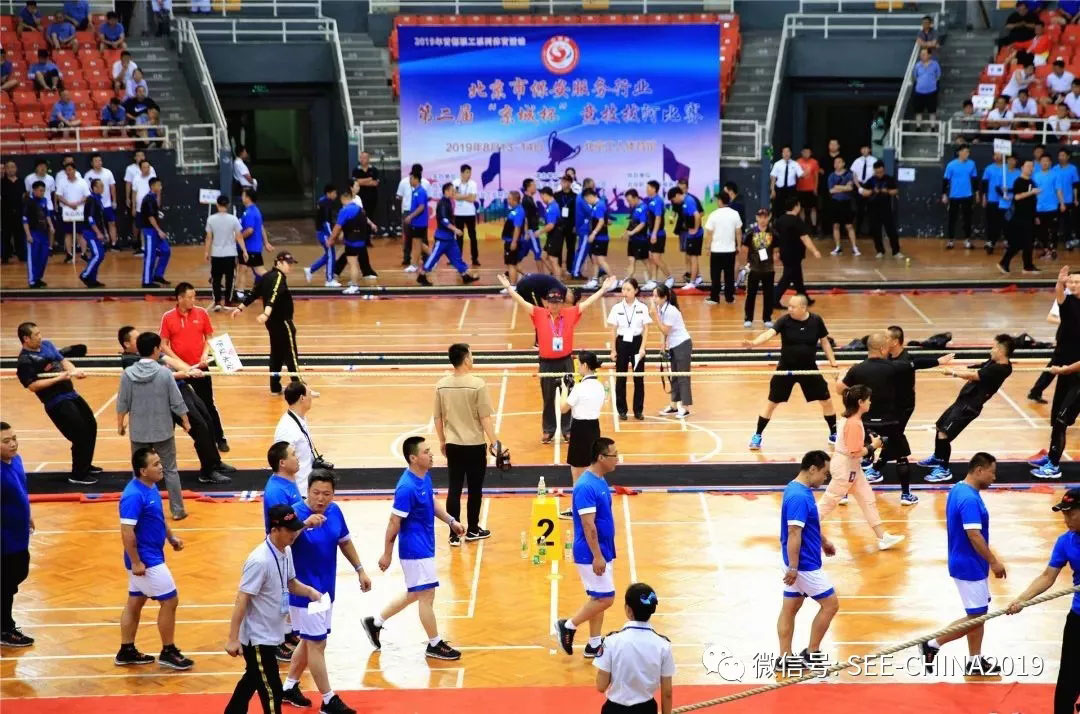 8月13-14日,2019年首都職工系列體育活動暨北京市保安服務(wù)行業(yè)第二屆“京城杯”競技拔河比賽在北京工人體育館圓滿結(jié)束。本屆賽事由北京保安協(xié)會、北京市保安服務(wù)行業(yè)工會聯(lián)合會主辦,北京京城保安服務(wù)有限公司承辦,北京職工體育服務(wù)中心協(xié)辦。本屆賽事共有113支代表隊(duì)參賽、共進(jìn)行了495場激烈比拼,比賽規(guī)模創(chuàng)世界之最。經(jīng)過兩天緊張激烈的角逐,最終??傌S臺代表隊(duì)榮獲本屆賽事季軍、??偝缥拇黻?duì)榮獲本屆賽事亞軍、振遠(yuǎn)中心代表隊(duì)榮獲本屆賽事冠軍。