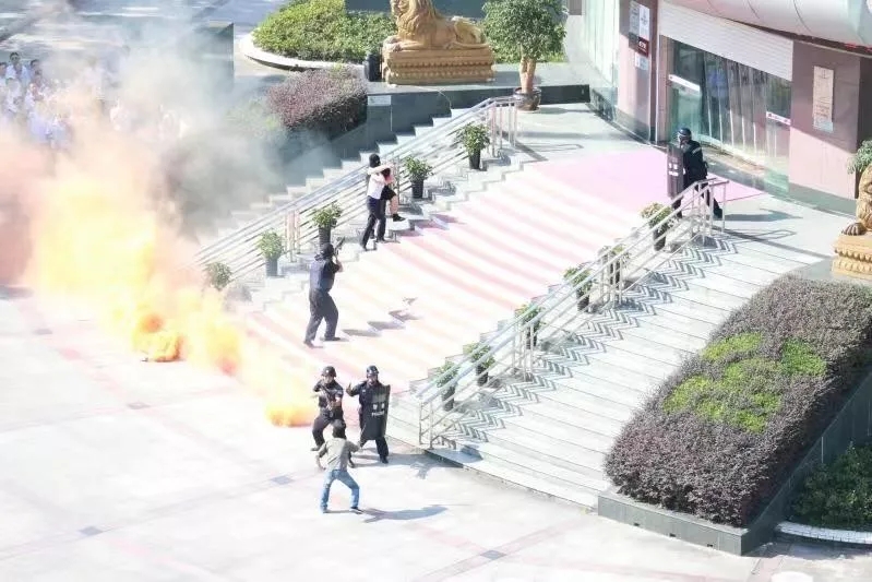 8月14日上午9時,恩施州城機(jī)場路發(fā)生一起“持槍搶劫”運(yùn)鈔車案。中國工商銀行恩施支行網(wǎng)點(diǎn)門前,網(wǎng)點(diǎn)工作人員和押運(yùn)人員一行8人將款箱護(hù)送至押運(yùn)車輛途中,遭3名蒙面“歹徒持械”(1人“持槍”、2人“持刀”)搶劫。警方接警后,快速集結(jié)派出所民警、巡特警、交警、刑偵等100余名警力前往處置,僅10余分鐘,便將3名“歹徒”成功制服并抓獲……