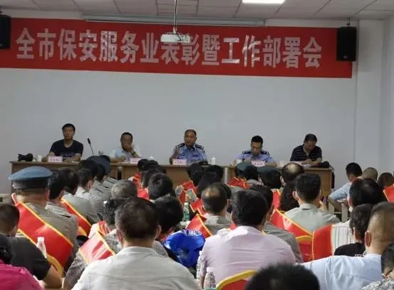 近日,馬鞍山市公安局保安管理支隊、市保安行業(yè)協(xié)會在金江保安學(xué)校召開全市保安管理暨表彰工作會議,表彰獎勵2019年表現(xiàn)優(yōu)秀的保安公司和保安員并部署下半年保安管理工作。保安管理支隊全體民警、市保安協(xié)會負(fù)責(zé)人、全市保安從業(yè)單位負(fù)責(zé)人及獲獎代表等100余人參加了這次會議。