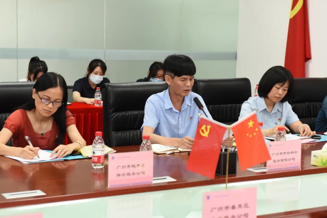 廣州市南沙保安服務(wù)有限公司黨支部書記劉文超圍繞該公司脫鉤改制后堅(jiān)持黨的領(lǐng)導(dǎo),健全了支部班子,積極推進(jìn)黨組織建設(shè)在國有企業(yè)高質(zhì)量發(fā)展中起到的作用等工作情況進(jìn)行分享。