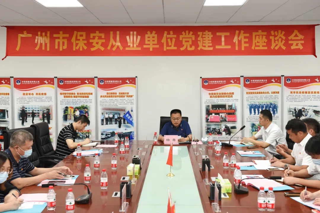 在中國共產(chǎn)黨成立99周年之際,為進(jìn)一步推進(jìn)廣州市保安從業(yè)單位的黨建工作,提升黨組織的號召力、凝聚力和戰(zhàn)斗力,打造“黨建強(qiáng)、服務(wù)強(qiáng)”的保安服務(wù)企業(yè),促進(jìn)保安行業(yè)健康有序發(fā)展。2020年6月22日下午,廣州市保安協(xié)會在中英保集團(tuán)有限公司組織召開保安從業(yè)單位黨建工作座談會。廣州市公安局政治部副主任、協(xié)會會長楊勇出席會議并講話,中共廣州市委黨校何良蘇教授受邀講課。廣州市公安局保安監(jiān)管部門領(lǐng)導(dǎo)、保安從業(yè)單位代表等共30余人參加會議。會議由協(xié)會副秘書長黃曉峰主持。
