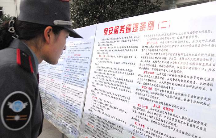 為學(xué)習(xí)保安行業(yè)首部法規(guī),總公司及時制作了展版,購買了《保安服務(wù)條例》單行本,組織全體保安從業(yè)人員認(rèn)真學(xué)習(xí)討論。