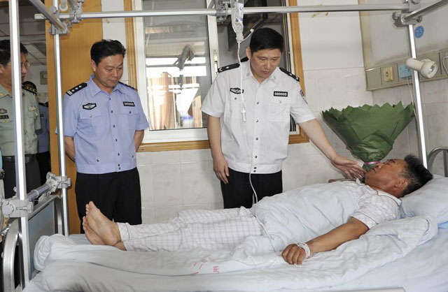 日上午,市公安局徐乾副局長在交巡警支隊蘇必偉支隊長和公司婁伯翱總經理等領導的陪同下,到八二醫(yī)院看望慰問了因公負傷的我公司保安四大隊交通協管員孫長如,并送上了慰問金。