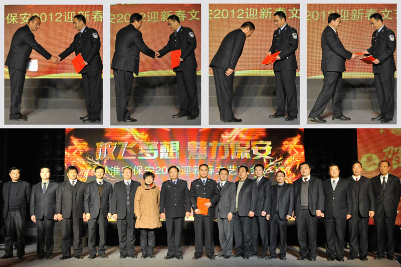 2012年元月14日晚,淮安保安2011年度總結(jié)表彰大會在總公司活動中心隆重舉行,公司保安隊伍、押運(yùn)隊伍和各分公司員工代表700余人參加了會議。