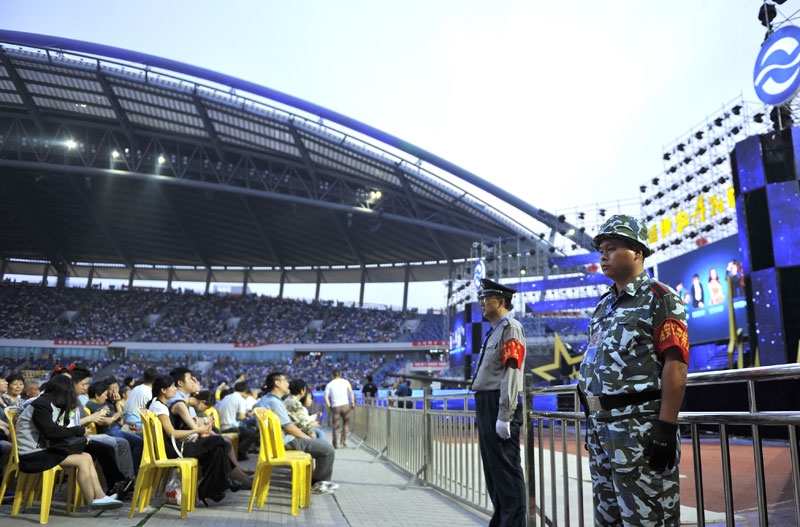 6月20日晚,由江蘇增力公司主辦的“雙溝牡丹2015亞洲群星演唱會(huì)”在淮安市體育中心體育場(chǎng)舉行,邀請(qǐng)韓紅、羅志祥、周筆暢、鄭智化、王杰等歌手來(lái)淮表演,現(xiàn)場(chǎng)觀眾3萬(wàn)余人。為確保此次演唱會(huì)安全順利舉辦,總公司按照“周密部署、確保安全”的總體目標(biāo),專門成立了安保工作領(lǐng)導(dǎo)小組,精心制定安保方案,積極協(xié)同有關(guān)部門細(xì)致落實(shí)各項(xiàng)安保措施;成立人力防范、安全檢查、技防監(jiān)控、后勤保障等共8個(gè)工作組,共抽調(diào)總公司人防中心、押運(yùn)中心、行政中心和器材公司、技防公司、物管公司、警犬基地等共計(jì)1000余名安保力量參加晚會(huì)安保工作,圓滿完成了任務(wù)。