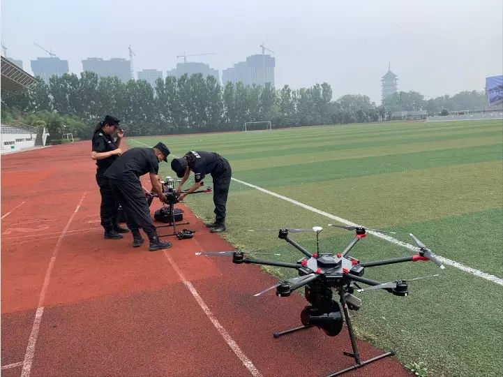 到達(dá)指定區(qū)域后,無(wú)人機(jī)操控員立即進(jìn)行了分工,并對(duì)設(shè)備進(jìn)行連接調(diào)試。早上5時(shí),所有參演人員按照指揮部指令到達(dá)指定位置。7點(diǎn)20分,蘇北跨區(qū)域拉練正式開(kāi)始。負(fù)責(zé)空中航拍的無(wú)人機(jī)操控員迅速將演練現(xiàn)場(chǎng)的實(shí)時(shí)畫(huà)面?zhèn)鬏斨连F(xiàn)場(chǎng)指揮部及省公安廳;演練過(guò)程中,發(fā)現(xiàn)“上訪人員”用民用無(wú)人機(jī)對(duì)現(xiàn)場(chǎng)進(jìn)行拍攝和干擾,無(wú)人機(jī)反制小組迅速做出反應(yīng),操控?zé)o人機(jī)反制設(shè)備對(duì)民用無(wú)人機(jī)進(jìn)行管制和驅(qū)離;隨著“上訪人員”人數(shù)的逐漸增多,現(xiàn)場(chǎng)指揮員要求飛控隊(duì)操控?zé)o人機(jī)載喇叭進(jìn)行高空喊話和宣傳相關(guān)的法律法規(guī),同時(shí)對(duì)“上訪群眾”進(jìn)行疏導(dǎo);由于現(xiàn)場(chǎng)部分“上訪人員”情緒過(guò)激,出現(xiàn)燒、搶、打、砸等惡劣狀況發(fā)生,態(tài)勢(shì)愈發(fā)嚴(yán)重,指揮部立即下達(dá)指令,無(wú)人機(jī)載著煙霧彈、催淚彈等升空,對(duì)人員密集的區(qū)域進(jìn)行投彈,成功驅(qū)散了現(xiàn)場(chǎng)的打砸人員。