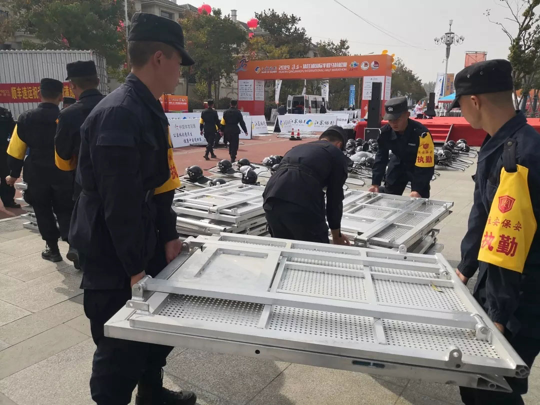 執(zhí)勤安保人員提前一天到達(dá)現(xiàn)場(chǎng)安裝隔離欄,為馬拉松賽事筑牢安全墻。比賽期間,各部門緊密配合,精誠(chéng)協(xié)作,確保了比賽絕對(duì)安全。在轄區(qū)各路口疏導(dǎo)交通,引導(dǎo)行人、車輛離開賽事區(qū),幫助找回兩名失散兒童,保管遺失的軍官證一本并尋找到了失主。從第一批執(zhí)勤安保人員5點(diǎn)進(jìn)入現(xiàn)場(chǎng),到下午2點(diǎn)把搭建的物件拆除完畢,執(zhí)勤隊(duì)員們結(jié)束了長(zhǎng)達(dá)9個(gè)小時(shí)的安?!榜R拉松”。