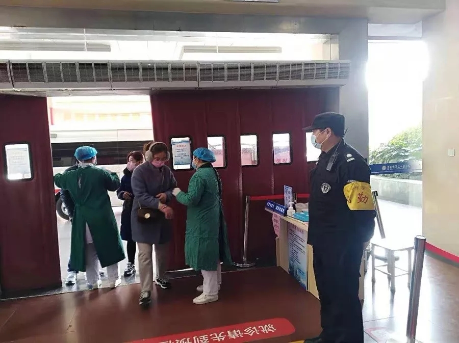 保安隊(duì)伍嚴(yán)把客戶單位人員和車輛出入關(guān),對(duì)進(jìn)入執(zhí)勤區(qū)域的人員進(jìn)行測(cè)溫登記和車輛消毒,配合客戶單位對(duì)辦公場(chǎng)所等公共區(qū)域進(jìn)行消毒防控;駐醫(yī)院保安員在執(zhí)勤中認(rèn)真做好就診人員體溫測(cè)量,疏散、引導(dǎo)就醫(yī);駐銀行保安員在執(zhí)勤中督促辦理業(yè)務(wù)的客戶做好自我防護(hù),并提醒佩戴防護(hù)口罩,協(xié)助銀行對(duì)客戶進(jìn)行體溫測(cè)量,做好安全防護(hù)措施。