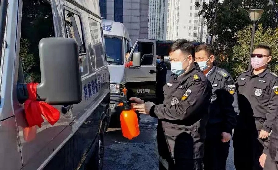 押運(yùn)隊(duì)伍在出車前和返回公司后,加強(qiáng)對(duì)個(gè)人裝備和運(yùn)鈔車的消毒工作,并安排專人每日對(duì)押運(yùn)裝備和押運(yùn)辦公場(chǎng)所進(jìn)行消毒,確保押運(yùn)過(guò)程零傳染。
