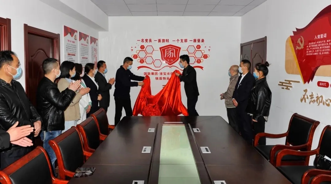 為進(jìn)一步深化國聯(lián)集團(tuán)“紅色驛站”特色黨建品牌建設(shè),發(fā)揮黨建引領(lǐng)作用, 4月28日上午,總公司下屬淮安市銀盾物業(yè)服務(wù)有限公司“紅色驛站”舉行揭牌儀式??偣军h總支書記、總經(jīng)理趙愛忠,副總經(jīng)理黃欣晨,總經(jīng)理助理陳峻峰,物業(yè)公司經(jīng)理王樹先共同為“紅色驛站”揭牌。