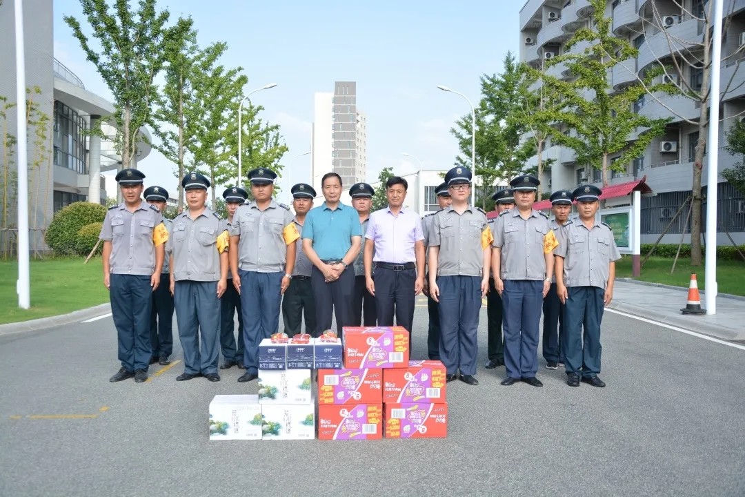 副總經(jīng)理王錦春來到人防中心駐金融中心、有軌電車、淮陰卷煙廠、江蘇鑫源薄片有限公司、淮安市護(hù)理職業(yè)技術(shù)學(xué)院5個執(zhí)勤點以及犬防大隊、銀盾供應(yīng)鏈物流公司,慰問了在高溫下堅守一線的執(zhí)勤人員,為一線人員送去了降溫防暑物品,給他們送去了總公司的關(guān)愛。