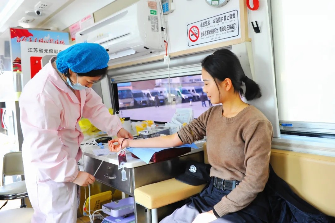 獻血隊伍中既有獻血多次的老獻血者,也有初次加入獻血隊伍的新人。一大早,采血車上已經(jīng)坐滿了通過血液篩查的獻血者們,他們精神飽滿,一旁的醫(yī)護人員專業(yè)熟練地對他們進行采血。剛獻了200毫升血液的保安班學員告訴筆者,原來獻血這么簡單,不但可以促進自身的血液循環(huán),還可以獻愛心、幫助別人,以后還將繼續(xù)參加獻血活動。
