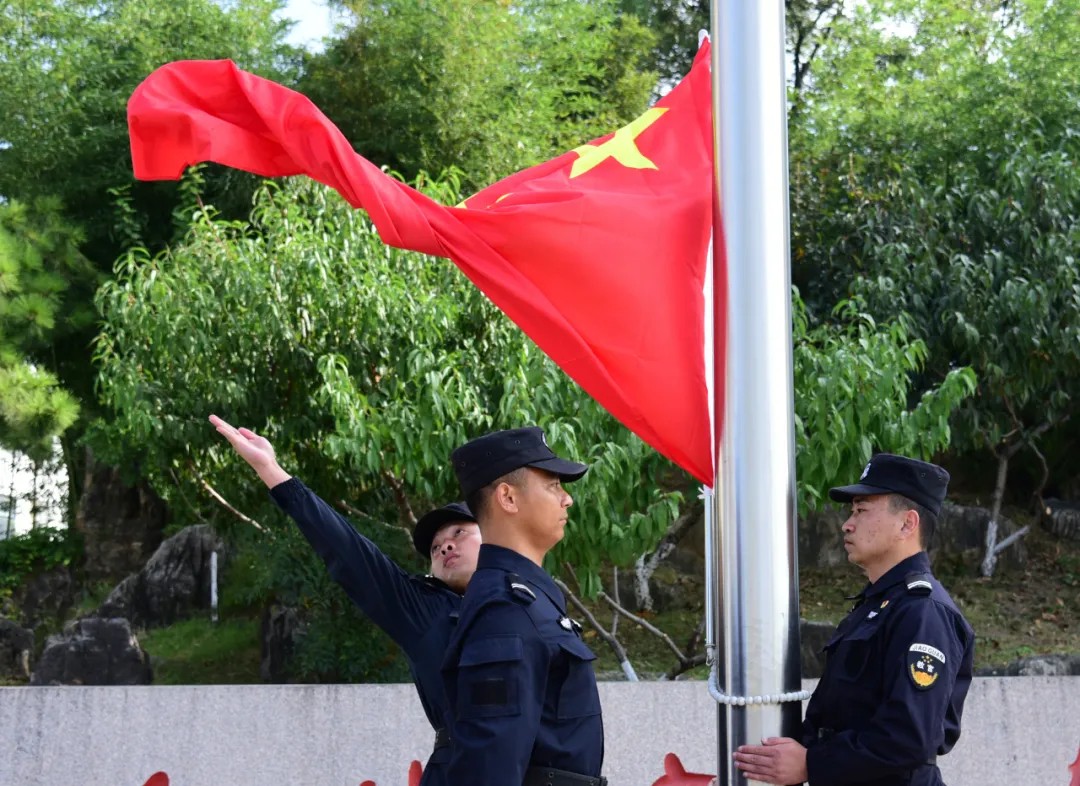 上午9時,三名旗手邁著整齊矯健的步伐,護(hù)衛(wèi)著國旗入場,伴隨著雄壯的國歌,鮮艷的五星紅旗冉冉升起,迎風(fēng)飄揚(yáng)。參加儀式的全體人員在升旗臺前列隊整齊、肅穆而立,面向國旗莊嚴(yán)行禮,共同祝愿偉大祖國更加繁榮昌盛!祝愿國聯(lián)保安更加壯大輝煌!祝愿全體員工更加幸福美滿!
